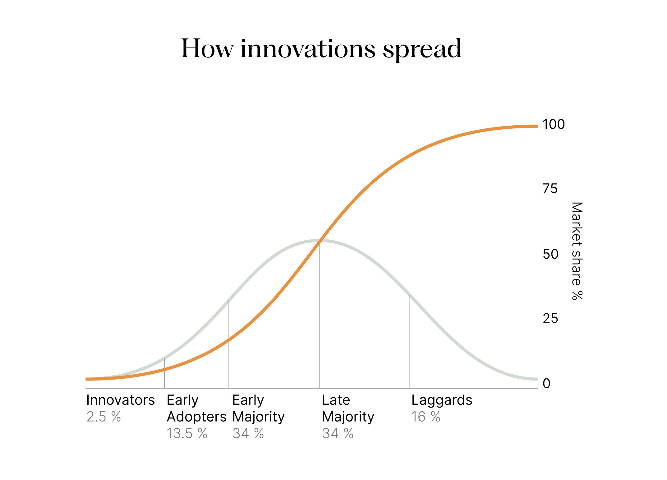 Researchers found that farmers varied wildly in how quickly they adapted to the new innovation. Based on their findings, the researchers divided people into five categories of innovation adoption: